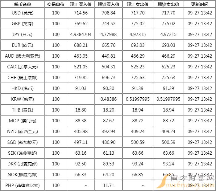 眼睛有神的婷 交通银行外汇牌价9月27日 交行美元汇率多少?下面同老张来看看。