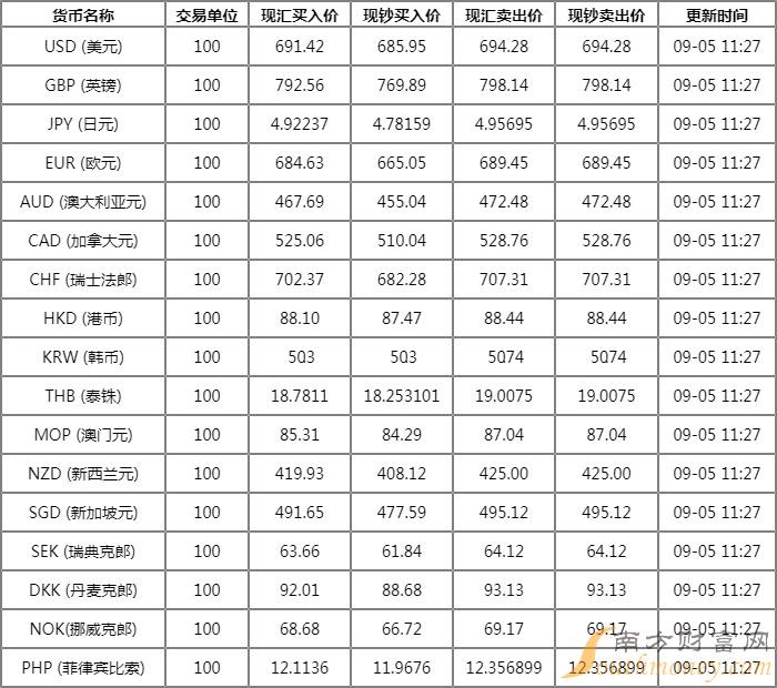 眼睛有神的婷 周一浦发银行外汇牌价表 9月5日浦发银行人民币对美元汇率多少?下面同吾悟君来看看