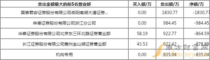 成交额:1.14亿元 合计买入:4431.14万元 合计卖出:6922.06万元 净额:-2490.92万元