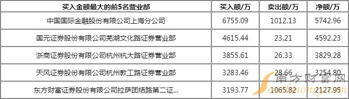 当天机构净买入前三的股票分别是中远海特、天齐锂业、吉大正元,净买入金额分别是5.44亿元、4.62亿元、1.2亿元。