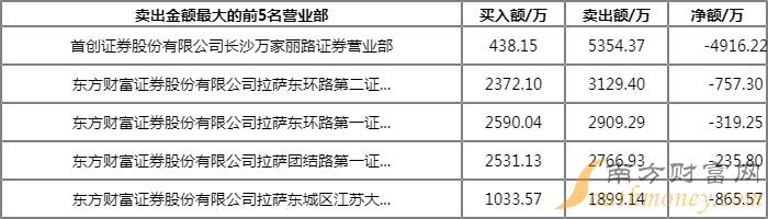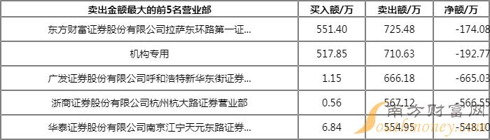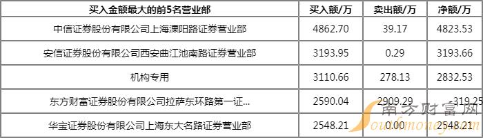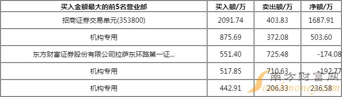 上榜的前五大买卖营业部合计成交8694.73万元,其中,买入成交额为4488.14万元,卖出成交额为4206.59万元,合计净买入281.56万元。