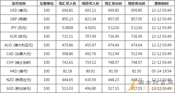 血盆大口的人字拖 招商银行外汇牌价表12月12日招行人民币汇率多少?下面同三江君来看看。