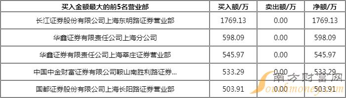 成交额:5273.17万元 合计买入:3950.38万元 合计卖出:1322.78万元 净额:2627.60万元