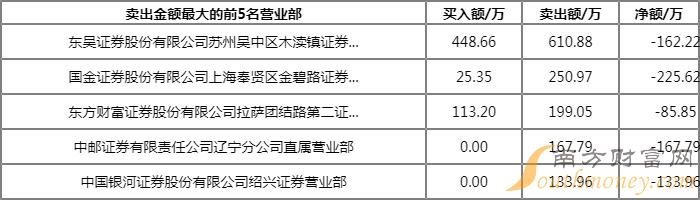 4月6日上榜原因:日跌幅偏离值达到7%的前5只证券。金浦钛业股票上榜的前五大买卖营业部合计成交8935.77万元,占该股当天成交总金额的比例为29.57%,其中,买入成交额为3597.19万元,占该股当天买入成交额的比例为11.90%,卖出成交额为5338.58万元,占该股当天买出成交额的比例为17.67%,合计净卖出1741.39万元,实力游资卖出,成功率31.76%。