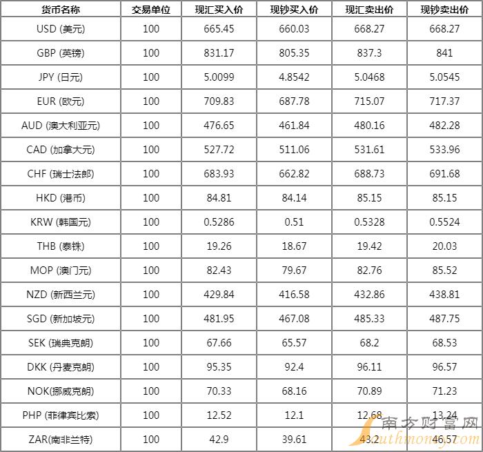 血盆大口的人字拖 中国银行外汇牌价表?中行人民币对美元汇率多少?下面同钱袋子来看看。