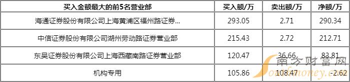 今日上榜的营业部中,共有1家机构专用席位现身,即买五、卖五,合计净卖出2.62万元。