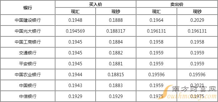 购汇/钞最优:工行 汇率: 0.19581000人民币可以购买5107.25泰国铢现钞/现汇