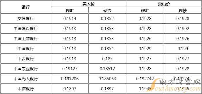 银行泰铢汇率表查询