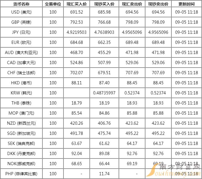 樱桃小口的琳 周一交通银行外汇牌价表 9月5日交行人民币对美元汇率多少?下面同富贵君来看看