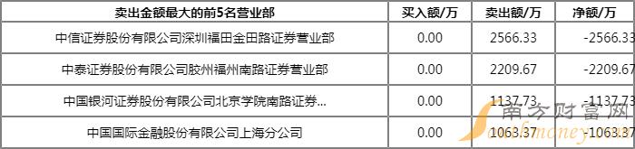 成交额:2.72亿元 合计买入:1.06亿元 合计卖出:1.66亿元 净额:-5980.94万元