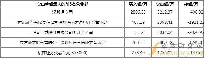 今日上榜的营业部中,深股通为第一大买入营业部及第一大卖出营业部,买入金额为2806.35万元,卖出金额为3212.37万元,合计净卖出406.02万元。