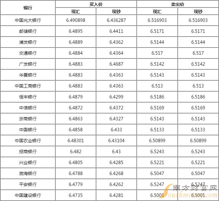 结汇最优:光大 汇率: 6.4908981000美元现汇可结汇为6490.90人民币
