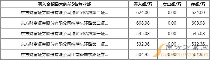 成交额:7510.82万元 合计买入:2815.37万元 合计卖出:4695.45万元 净额:-1880.07万元