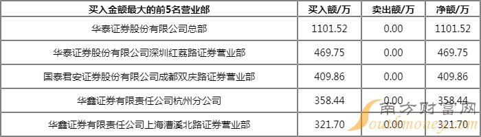 今日上榜营业部中,第一大买入营业部为华泰证券股份有限公司总部,买入金额为1101.52万元,第一大卖出营业部为平安证券股份有限公司深圳深南东路罗湖商务中心证券营业部,卖出金额为454.02万元。