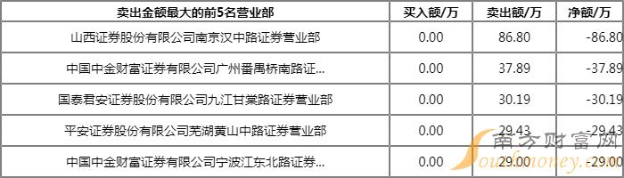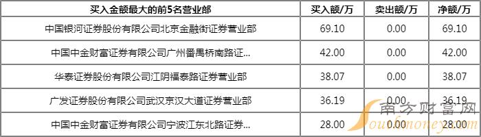 今日上榜营业部中,第一大买入营业部为中国银河证券股份有限公司北京金融街证券营业部,买入金额为69.10万元,第一大卖出营业部为山西证券股份有限公司南京汉中路证券营业部,卖出金额为86.80万元。