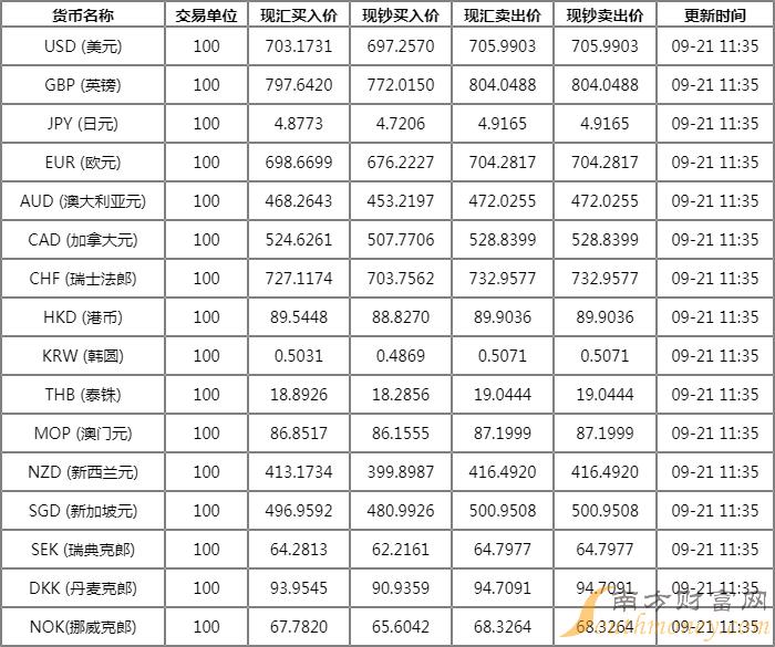 通西红柿 光大银行外汇牌价表 9月21日光大银行人民币对美元汇率多少?下面同大耳朵来看看。