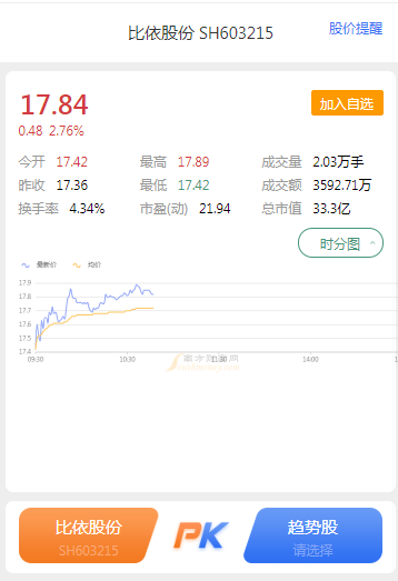 通西红柿 2022年8月10日,比依股份(603215)新增3家机构对其2022年度业绩做出预估。安信证券预估目标价23.29元,6个月内累计共4家机构,预估2022年净利润均值为1.61亿元,较去年同比增长34.28%。其中,2家机构“买入”,1家机构“持有”,1家机构“增持”。目标价格预估23.29元。