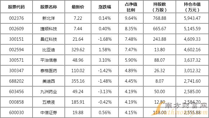 前十持仓占比合计:60.71%