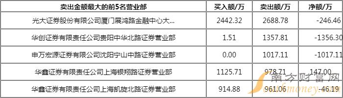 4月6日上榜原因:有价格涨跌幅限制的日价格振幅达到15%的前五只证券。信达地产股票上榜的前五大买卖营业部合计成交3.74亿元,占该股当天成交总金额的比例为18.04%,其中,买入成交额为1.05亿元,占该股当天买入成交额的比例为5.09%,卖出成交额为2.68亿元,占该股当天买出成交额的比例为12.95%,合计净卖出1.63亿元,实力游资卖出,成功率29.47%。