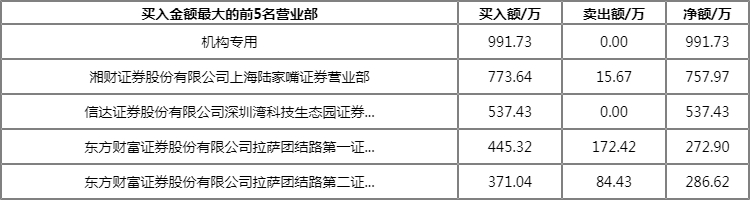 具体来看,今日上榜的营业部中,共有1家机构专用席位现身,即买一,合计净买入991.73万元。