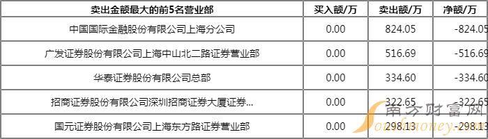 上榜的前五大买卖营业部合计成交3646.33万元,其中,买入成交额为1350.20万元,卖出成交额为2296.13万元,合计净卖出945.93万元。