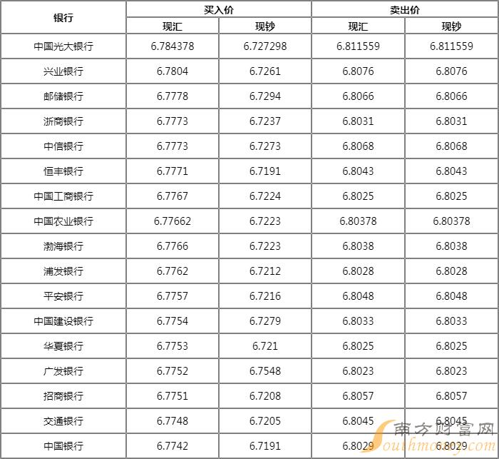 结汇最优:光大 汇率: 6.7843781000美元现汇可结汇为6784.38人民币