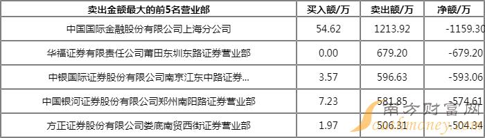 上榜的前五大买卖营业部合计成交5766.92万元,其中,买入成交额为2092.11万元,卖出成交额为3674.81万元,合计净卖出1582.69万元。