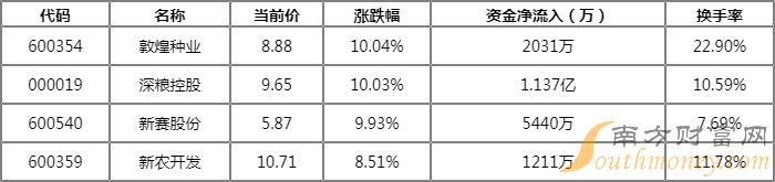 粮食概念主力净流出1.1332亿元