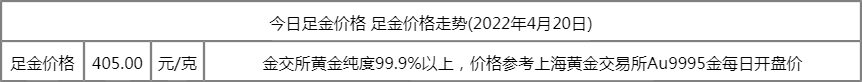 失掉光彩的长颈鹿 足金价格今天多少一克?2022年4月20日足金价格多少一克?最新足金价格查询,今日足金多少钱一克?袋袋君为您提供最新千足金价格查询,以下价格仅供参考