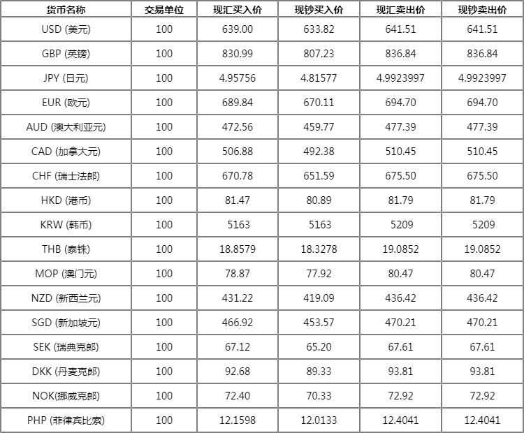 注:市场行情变化较快,以上汇率行情数据仅供参考,请以当时最新行情为准