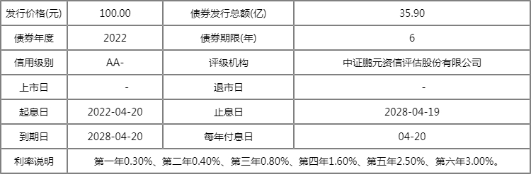 据悉,本次发行的可转换公司债券的期限为自发行之日起六年,即2022年4月20日至2028年4月19日。票面利率为:第一年0.3%、第二年0.4%、第三年0.8%、第四年1.6%、第五年2.5%、第六年3%。限本次发行的可转债转股期自可转债发行结束之日满六个月后的第一个交易日起至可转债到期日止。
