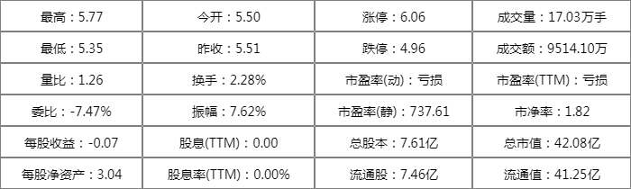 近5个交易日股价下跌12.69%,最高价为7.78元,总市值下跌了36.44亿。