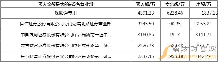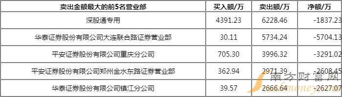 成交额:20.32亿元 合计买入:6.35亿元 合计卖出:13.97亿元 净额:-7.62亿元