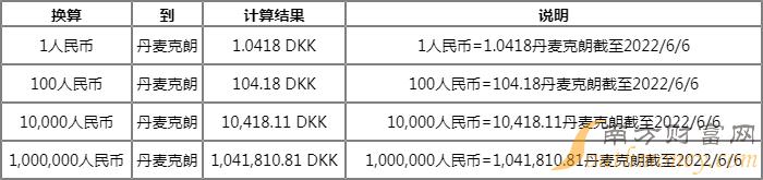 1人民币=1.0418丹麦克朗