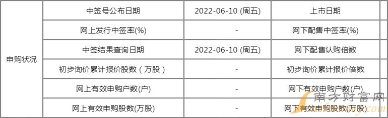 网上发行日期 2022-06-08 (周三) 网下配售日期 -