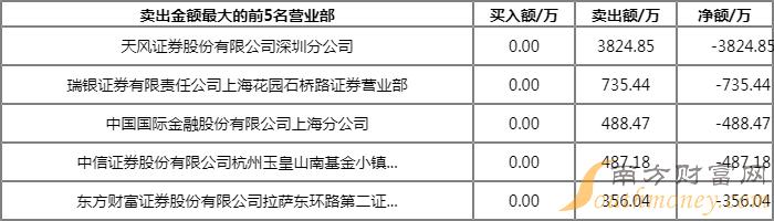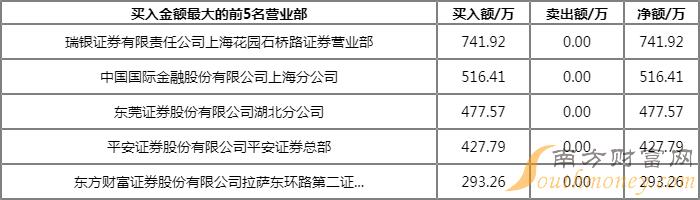 今日上榜营业部中,第一大买入营业部为瑞银证券有限责任公司上海花园石桥路证券营业部,买入金额为741.92万元,第一大卖出营业部为天风证券股份有限公司深圳分公司,卖出金额为3824.85万元。