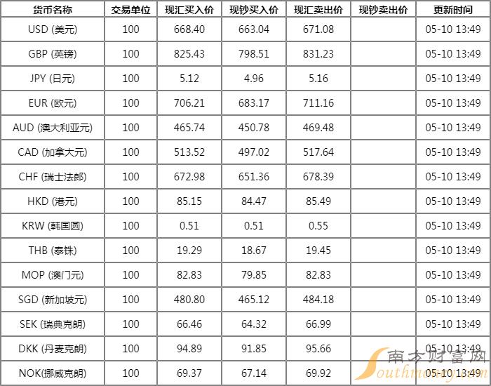 中国农业银行外汇牌价表5月10日 农业银行人民币汇率多少?下面同袋袋君来看看。