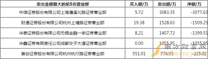 成交额:1.23亿元 合计买入:2955.23万元 合计卖出:9353.51万元 净额:-6398.28万元
