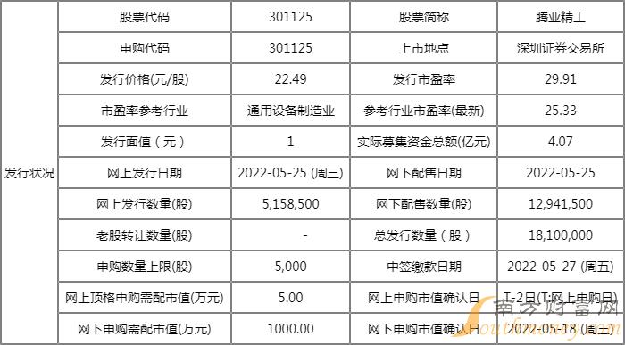 可以根据前一个上市的创业板新股来推算,最近一个上市的新股和腾亚精工接近的是瑜欣电子(301107),发行价格是25.64元/股,这一股票打新收益是17195元,首日上涨134.13%%。