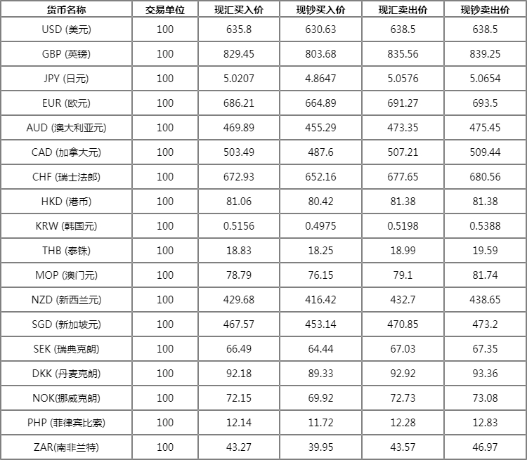 1.本牌价仅供参考,以银行各分行实际交易汇率为准。