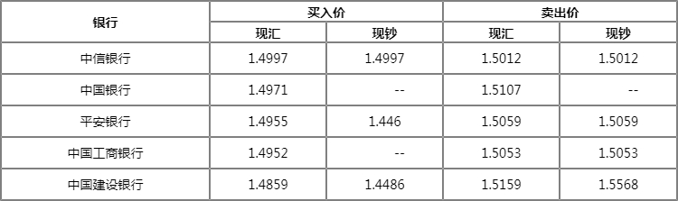 结汇最优:中信 汇率: 1.49971000马来西亚元现汇可结汇为1499.70人民币