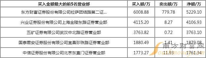 上榜的前五大买卖营业部合计成交2.96亿元,其中,买入成交额为1.90亿元,卖出成交额为1.06亿元,合计净买入8340.82万元。