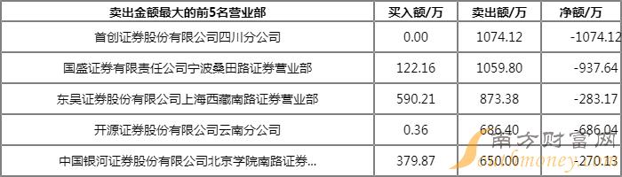 上榜的前五大买卖营业部合计成交1.17亿元,占该股当天成交总金额的比例为25.25%,其中,买入成交额为7021.97万元,卖出成交额为4684.94万元,合计净买入2337.03万元。