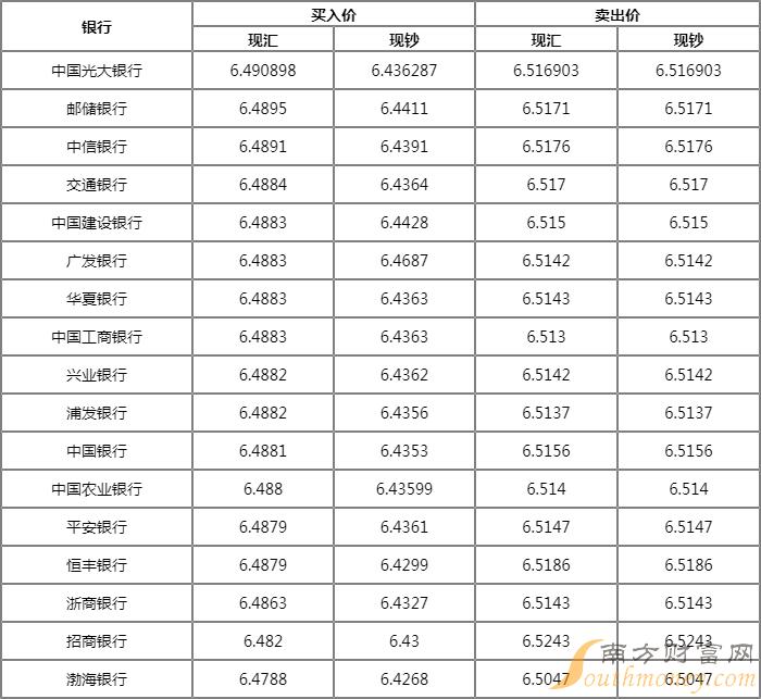 结汇最优:光大 汇率: 6.4908981000美元现汇可结汇为6490.90人民币