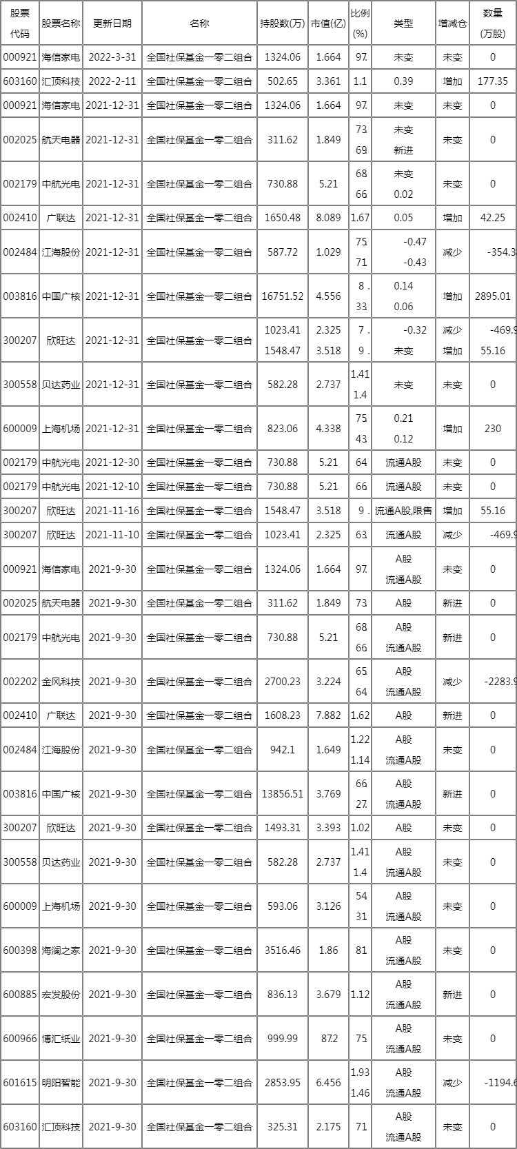 碧眼突出的蓉 2022社保基金重仓股一览 新进个股有哪些?