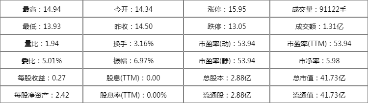 | 委比:33.50% | 振幅:10.75% | 市盈率(静):34.44 | 市净率:3.23 |