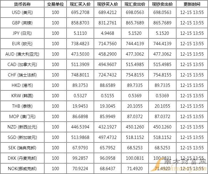 碧眼突出的蓉 最新光大银行外汇牌价表 光大银行人民币对美元汇率多少?(12月15日),下面同汇财君来看看。