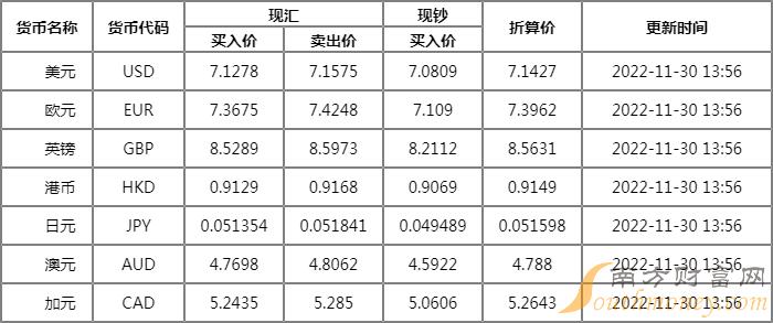 碧眼突出的蓉 邮储银行外汇牌价表11月30日邮储银行人民币汇率是多少?下面同汇财君来看看。