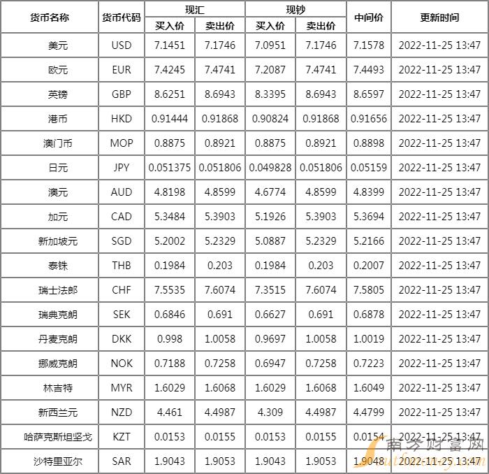 碧眼突出的蓉 中信银行外汇牌价表 11月25日中信银行汇率是多少?下面同小股来看看。