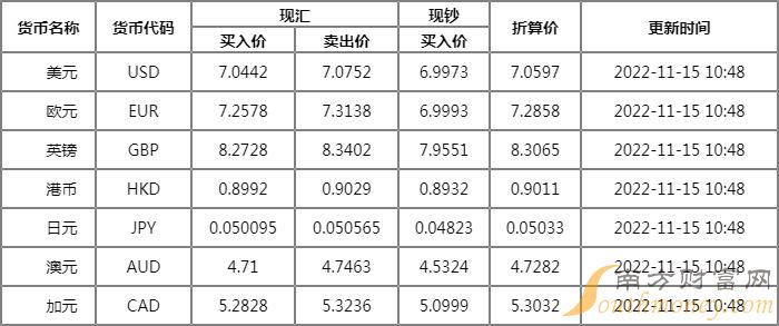 碧眼突出的蓉 邮储银行外汇牌价表11月15日邮储银行人民币对美元汇率多少?下面同胡V来看看。
